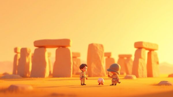 Welcome to the world of Stonehenge! This incredible, ancient circle of stones has stood in the green countryside of Wiltshire, England, for thousands of years. Archaeologists—the detectives of history—tell us that building started around 3100 BC and continued for over a thousand years! It’s one of the most famous prehistoric monuments in the world, but because the people who built it didn't leave behind any writing, we have to use clues to figure out its amazing story for kids like you!